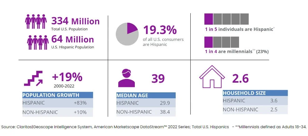 According to the latest figures from the U.S. Census Bureau, the Hispanic population in the United States surpassed 60 million in 2020, accounting for 18.7% of the total population. In 2023, there are 67.7 million Hispanics in the U.S., representing nearly 20% of the total population. This means that almost 1 in 5 members of the population are Hispanic! If your business isn’t reaching out and connecting with this influential demographic, you could be seriously missing out.